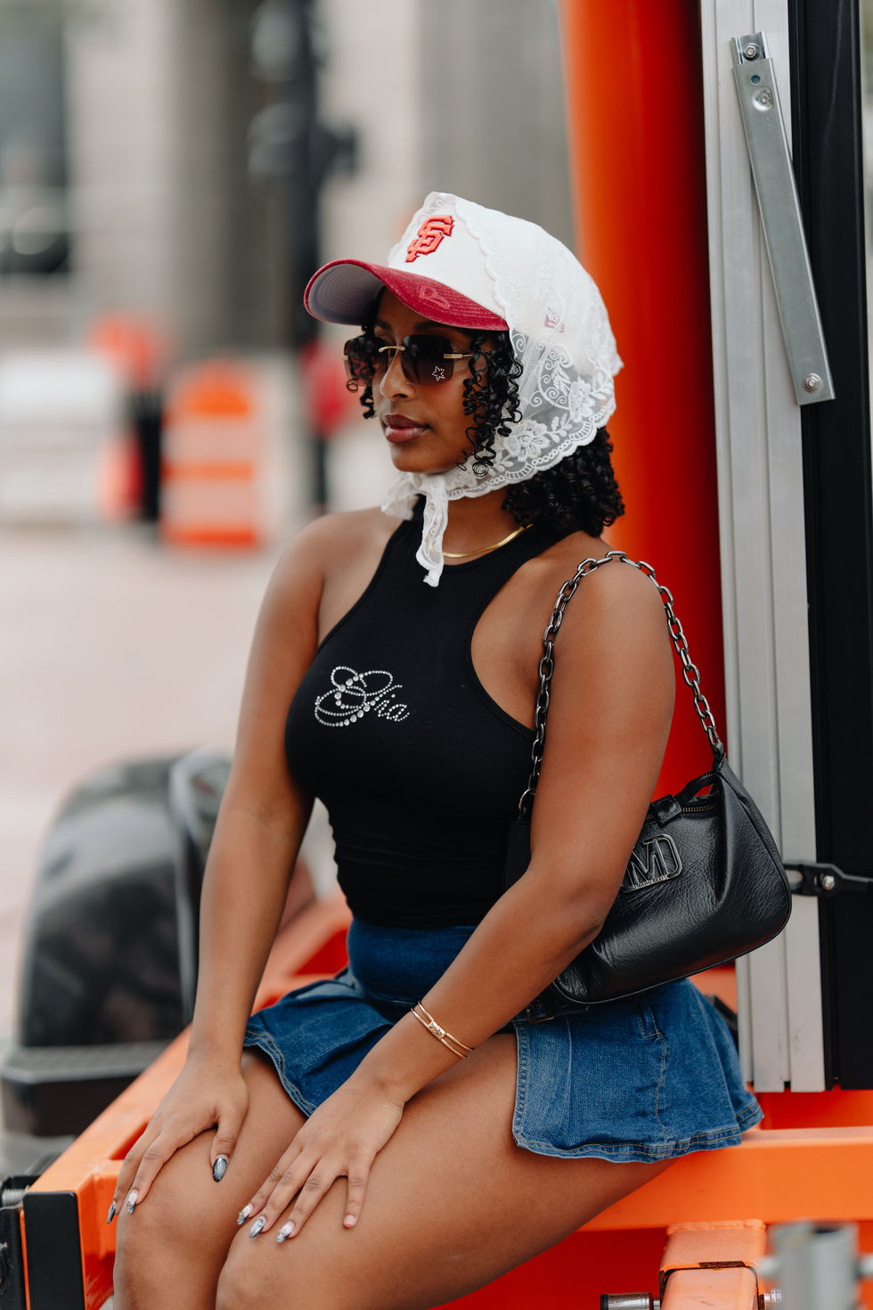An ode to effortless confidence and early 2000s flair, Cool Girl Summer reimagines urban streetwear through a glam, modern lens. Styled against a backdrop of city grit and nostalgic textures, this shoot blends mini skirts, headscarves, bold accessories, and oversized jerseys into a visual diary of empowered femininity.
